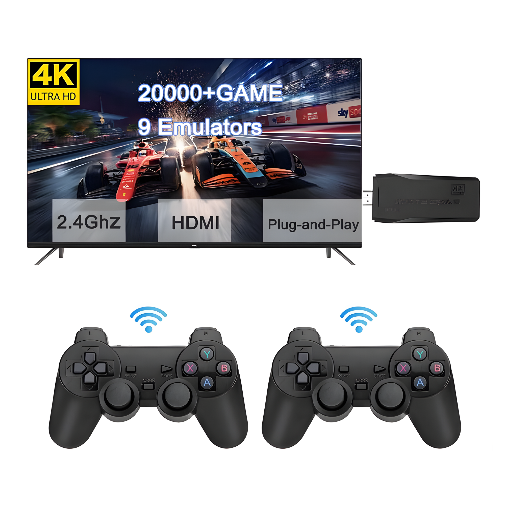 Con la sencillez y la comodidad del Game Stick inalámbrico de 2 x 2,4 GHz, puedes disfrutar de la diversión jugando con tus amigos, compañeros de trabajo y niños.